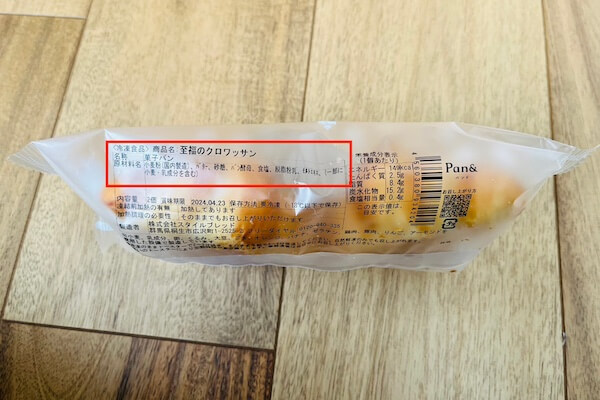 | 至福のクロワッサン | 小麦粉(国内製造)、バター、砂糖、パン酵母、食塩、脱脂粉乳、モルトエキス、(一部に小麦・乳成分を含む) |