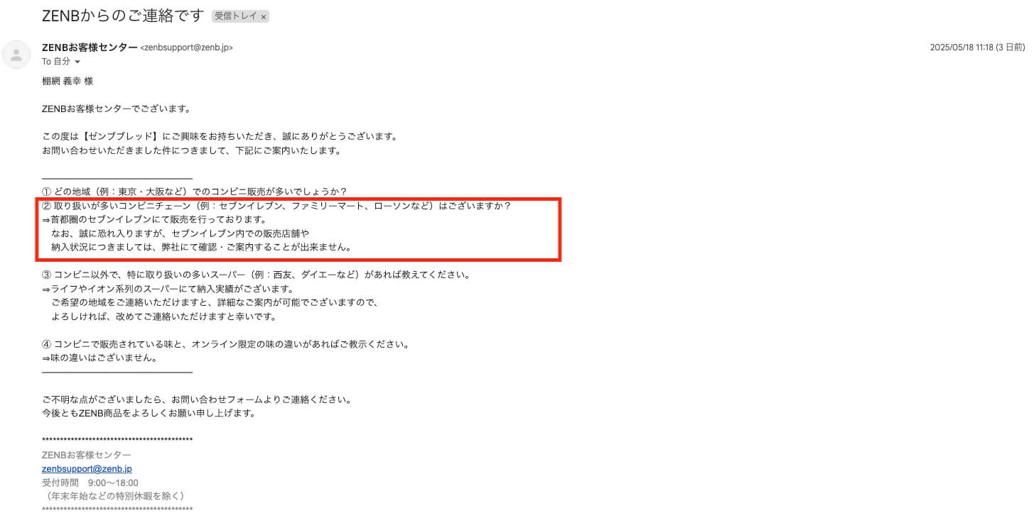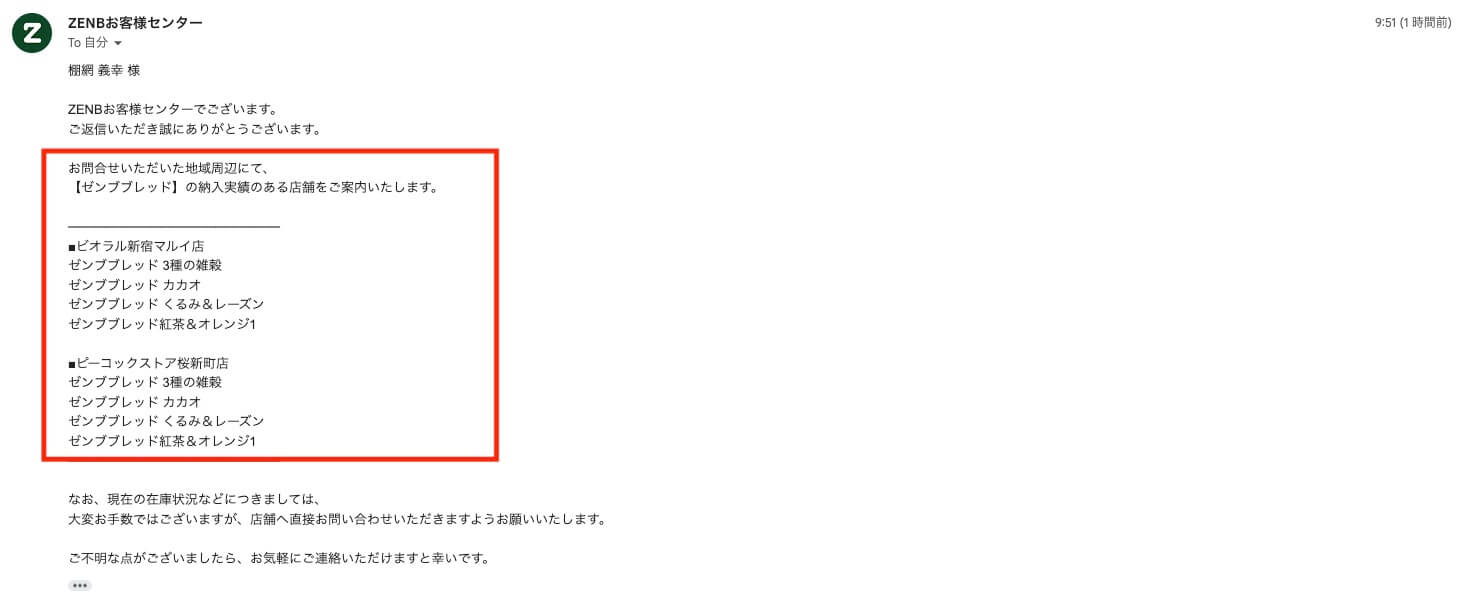 Official websiteWhen I checked, I was told that it may be sold at some convenience stores and supermarkets, but I didn't know the specific location, so I contacted the ZENB customer center.You can purchase it at "Seven-Eleven in the Tokyo Metropolitan Area"It turned out.